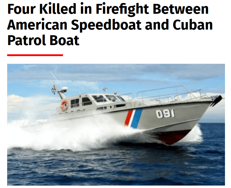 “美国快艇与古巴巡逻艇发生冲突,四人丧生”——上图为美国《海军时报》网站相关新闻截图