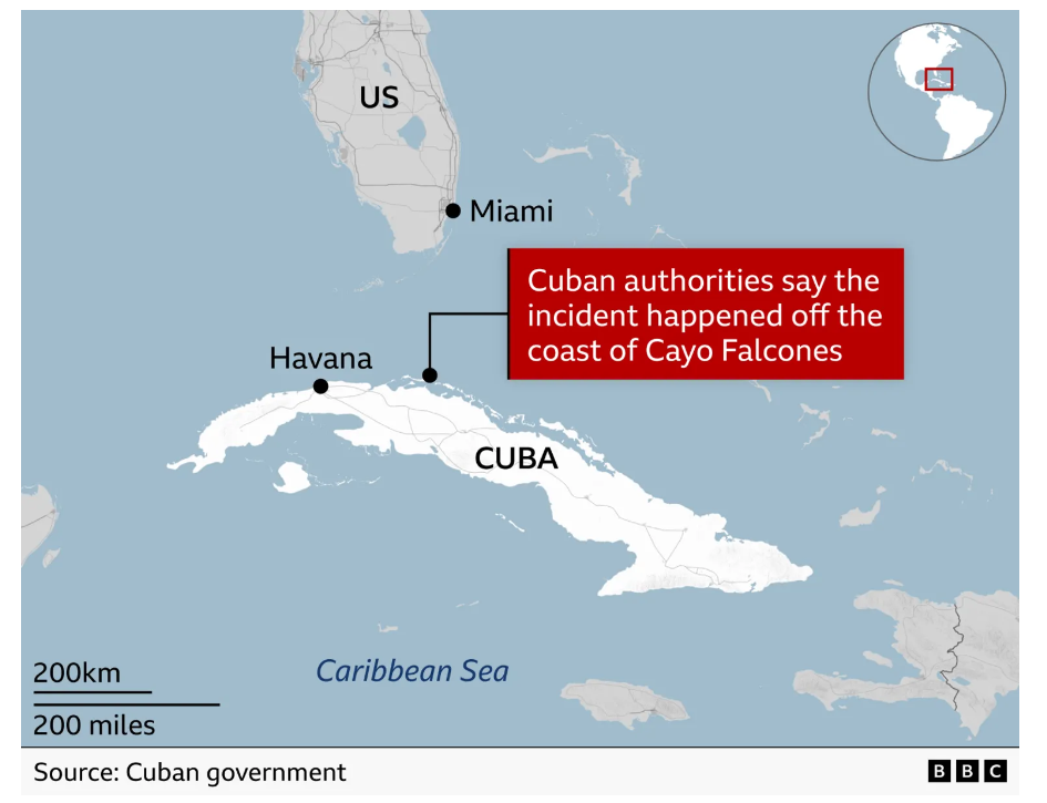 在当地时񝮊�日晚些时候发布的一份声明中,古巴相关部门表示,这艘快艇上“搭载了 10 名武装人员”,他们“意图以恐怖主义为目的进行渗透行动”。